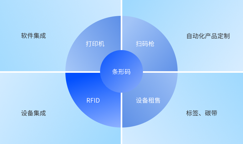 標簽和碳帶 條形碼識別產品 RFID射頻識別產品 軟件定制產品 非標定制產品 硬件維修租賃